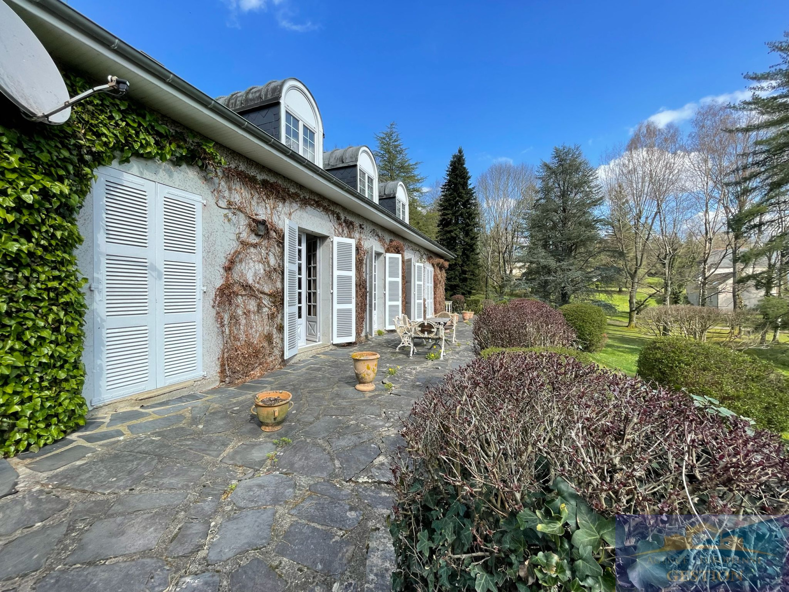 Lourdes (65100)Découvrez cette superbe propriété, idéale pour les amoureux de charme et d’authenticité. Dès l’entrée, vous serez séduit par le vaste hall qui dessert une grande cuisine conviviale et un séjour lumineux de 63 m², agrémenté d’une cheminée à foyer ouvert. Cet espace de vie s’ouvre sur une terrasse plein sud, offrant une vue imprenable sur le parc arboré et les montagnes.