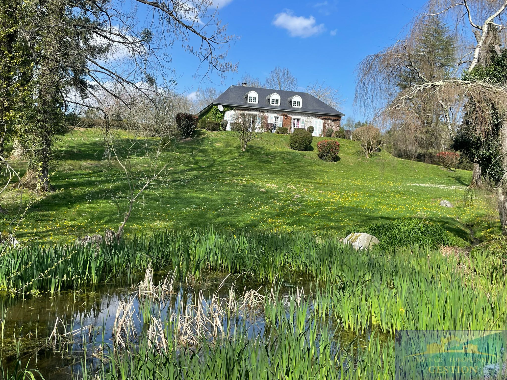Le rez-de-chaussée propose trois belles chambres, dont une suite parentale, tandis qu’un bel escalier mène à l’étage où vous trouverez trois chambres supplémentaires, une salle de bain et des toilettes indépendantes. L’accès à la maison se fait par un chemin traversant le parc paysager, ponctué de majestueux arbres, d’un petit ruisseau et d’un étang, pour une atmosphère paisible et ressourçante.