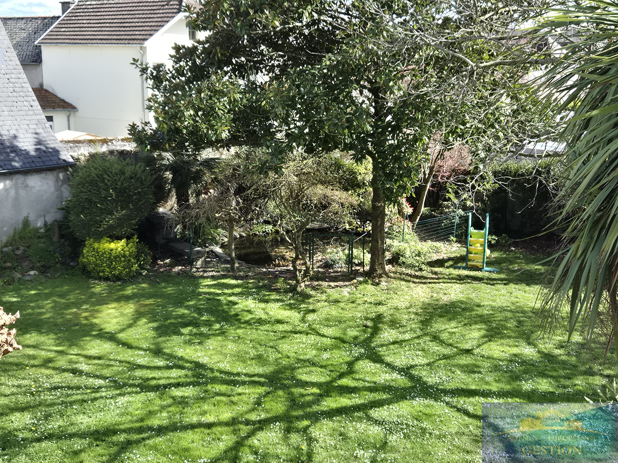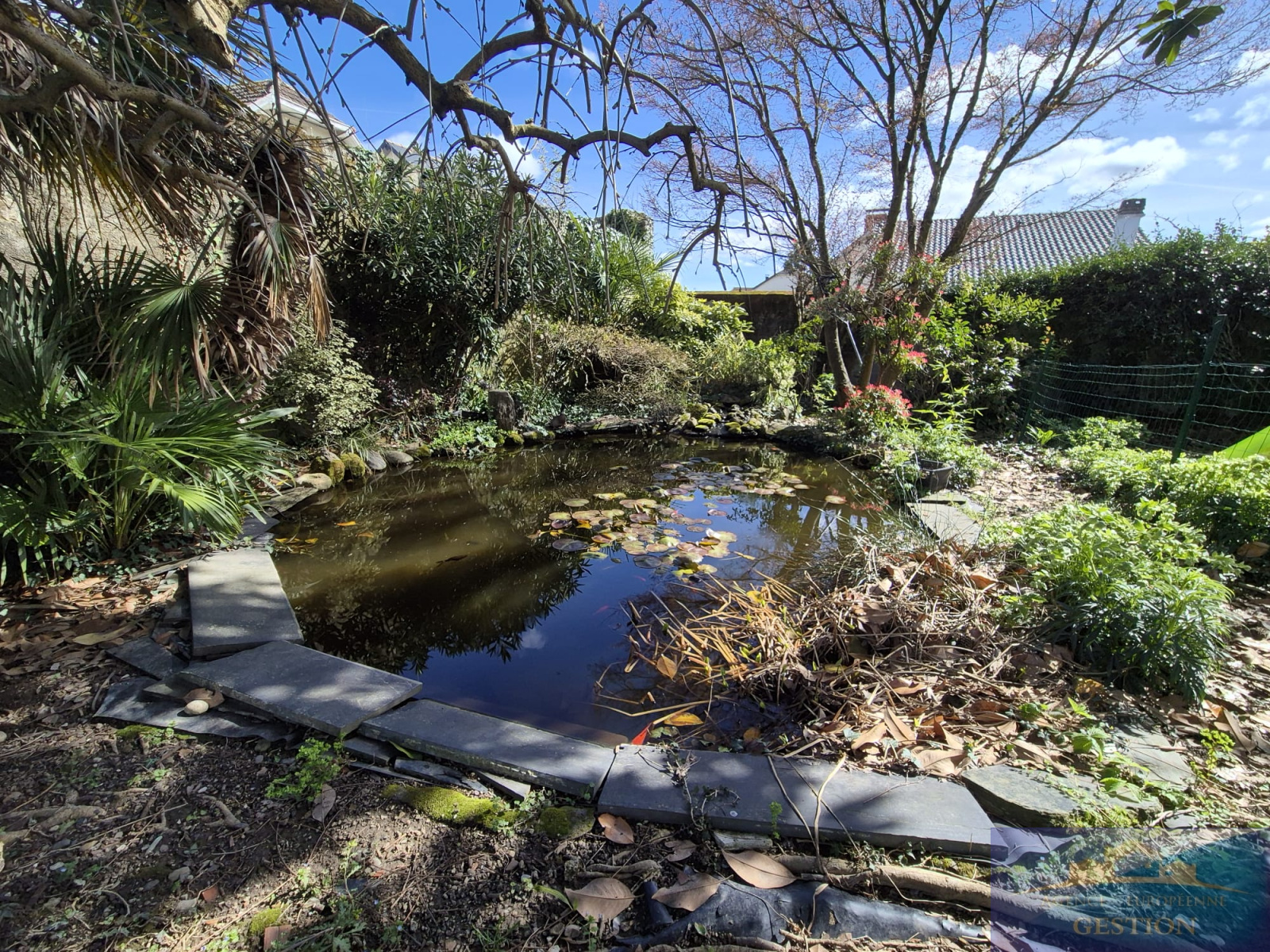 Implantée sur une parcelle de 1 175 m², la propriété offre un jardin arboré avec son bassin et parfaitement entretenu.