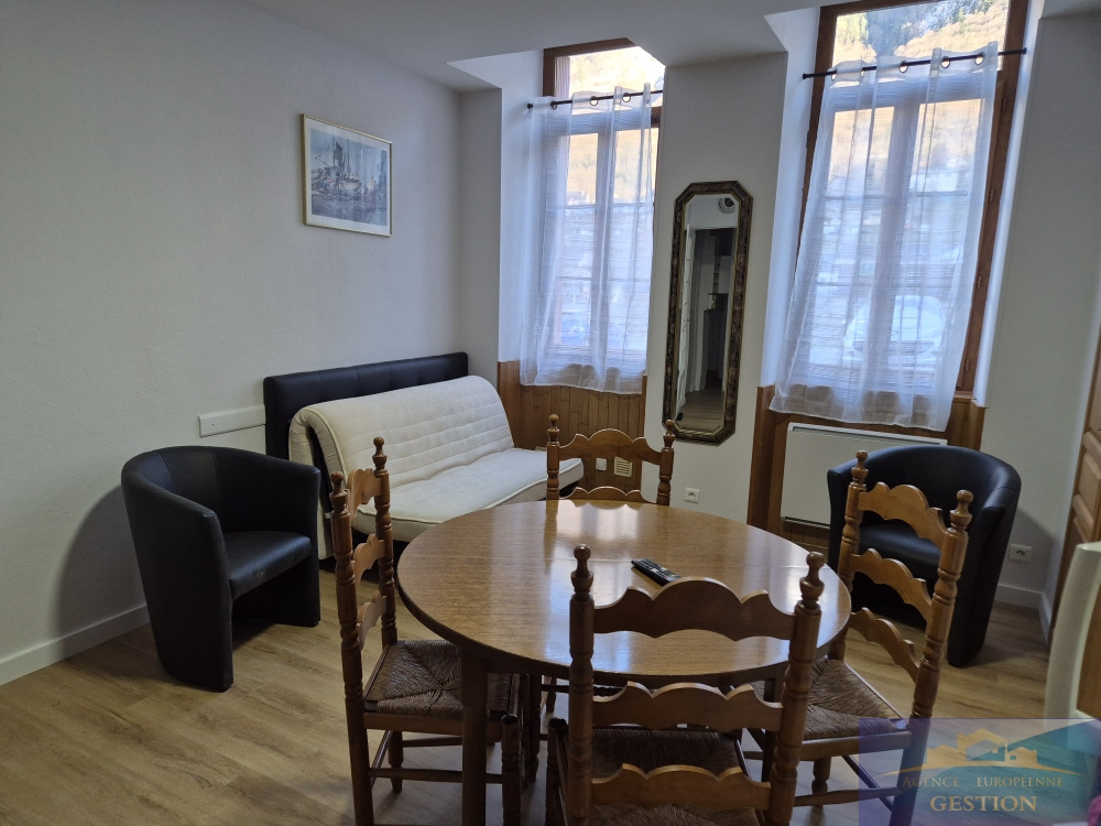 Cauterets (65110)Dans une copropriété de 12 lots bien entretenue, appartement de 40 m² traversant d'Est en Ouest, avec vue montagne. Une pièce de vie réunissant cuisine équipée ouverte sur le salon/coin repas. Une chambre avec couchages pour 4 pers. (lit en 140 + mezzanine confortable pour 2 pers) une salle d'eau douche + wc séparés. Une pièce supplémentaire faisant office de buanderie + rangement. Travaux de rénovation et déco à prévoir. En rez-de-chaussée un casier à ski privatif dans les parties communes. Charges de coproprieté faibles 376 €/an - Taxe foncière 534 €. Votre contact Véronique 06.61.33.28.77 / 05.62.42.19.53 Prix incluant les honoraires d'agence à la charges de l'acquéreur 139 100 € HAI